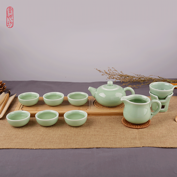 礼品描述:这款茶具,梅子青釉,温润如玉,龙泉青瓷,击声如磬,造型小巧可爱,活泼玲珑,自然称得上茶具中的“玉玲珑”。
