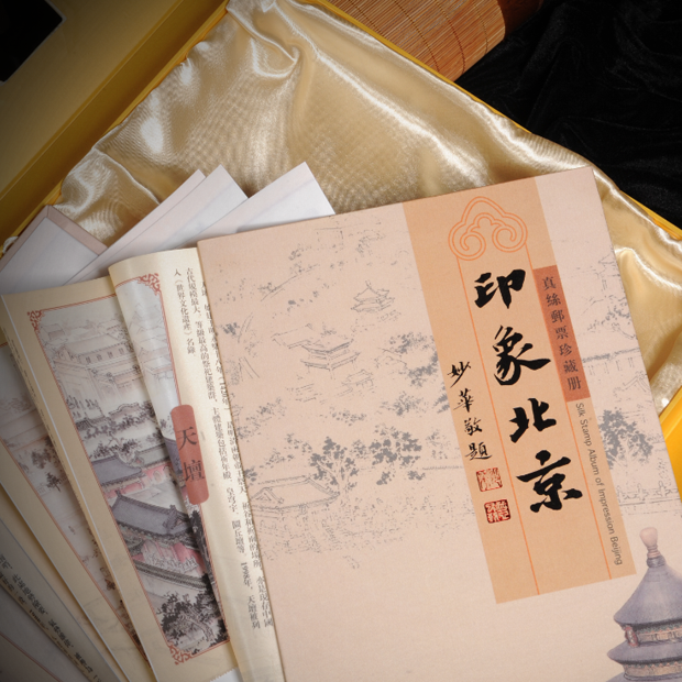 值。我们相信,这部集国画、书法、邮票等多种艺术形式于一体的真丝邮票珍藏册《印象·北京》,将会是一部传承京韵文化、宣传北京历史的不可多