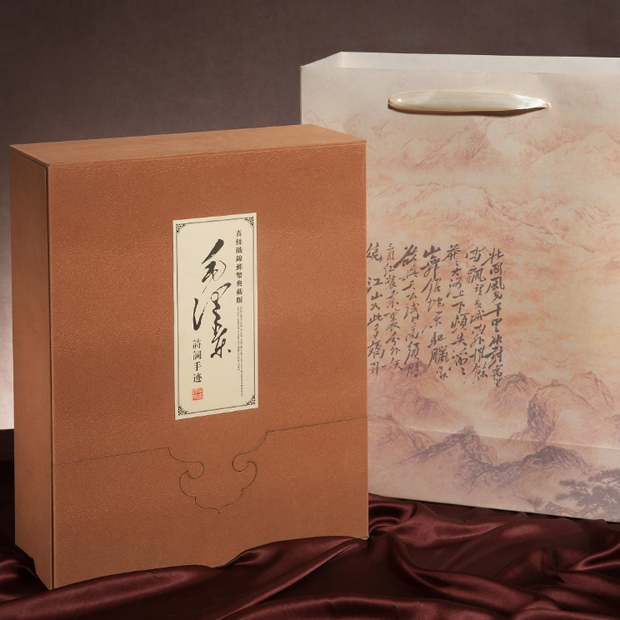 礼品描述:真丝织锦邮币典藏版《毛泽东诗词手迹》选用了中华传统名贵真丝为材质,采用了丝绸工艺中最为繁复也最为高贵的真丝织锦工艺,以三十万二千余根桑蚕丝线,经五亿五千五百万次经纬交织,精心织就,将这部珍贵的毛泽东手书诗词与真丝织锦这一国粹完美结合,刚柔相济,美仑美奂,蕴意博大精深的文化艺术。