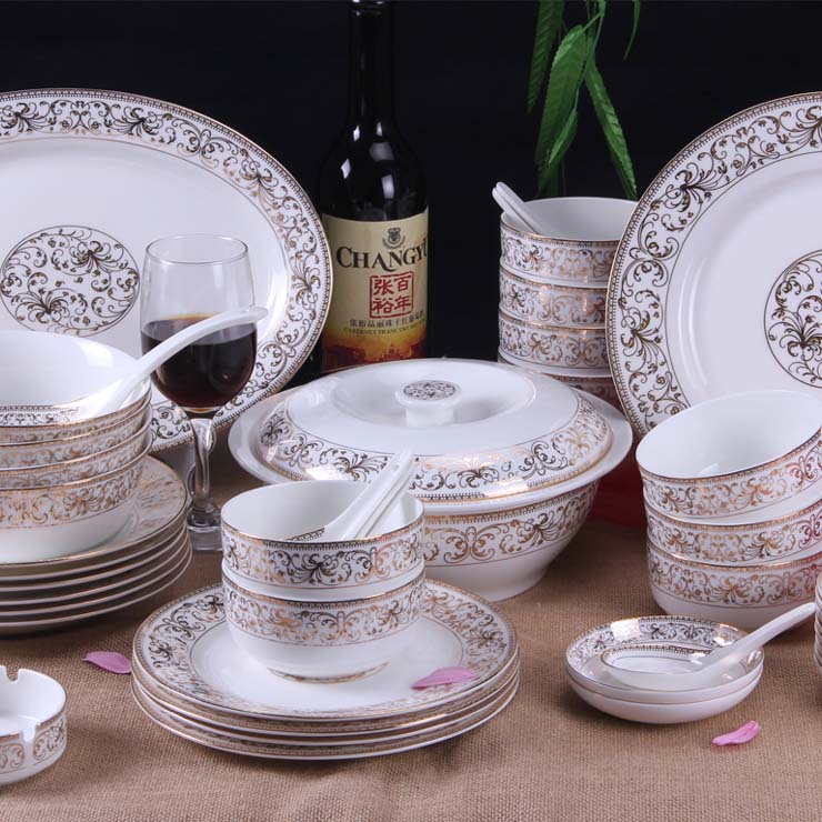 礼品配质: 4.25寸韩碗10个、小调羹10个、4 寸小吃碟10个、烟缸1个、牙签筒1个、12寸鱼盘1个、10寸平盘1个、大调羹1个、9寸汤锅1个、8寸汤盘6个、6寸面碗4个、8寸平盘4个