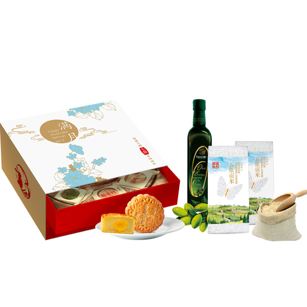 礼品规格:芭苛斯特级初榨橄榄油500ml*1、卡宴五常贡米500g*2、稻香村双黄莲蓉200g×1、紫薯山药50g×1、金丝枣蓉50g×1、黑芝麻蓉50g×1、奶油椰蓉50g×1、凤梨月饼50g×1 糖醇南瓜50g×1、玫瑰豆沙50g×1、有机黑豆280g、有机黄豆280g、有机红豆340g、有机绿豆350g、有机糙米350g、有机燕麦米300g、有机薏仁米300g、有机黑香米350g